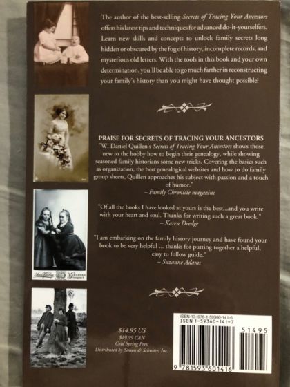 Genealogist/author W.D. Quilen picks up where he left off in Secrets of Tracing Your Ancestors. He shows do-it yourself genealogists who have progressed past his beginning steps exactly how to find their ancestors with more advanced methods of researching those hard-to-find ancestors. Quillen tells readers how to overcome those difficult roadblocks that frequently crop up. Investigative techniques, research insights and new websites are highlighted to assit with more advanced genealogical research. Areas covered include: --in depth census research --mortality schedules --extensive section on militaary records --US region-by-region research assistance --global research tips --engaging a professional genealogist QUOTE FROM SECRETS OF TRACING YOUR ANCESTORS: "Shows those new to the hobby how to begin, while showing seasoned family historians some new tricks...passion and a touch of humor-." Family Chronicle Magazine.
