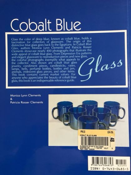 Glass the color of deep blue, known as cobalt blue, holds a fascination for collectors of glassware. The origin of this distinctive blue glass goes back to the Egyptians. In Cobalt Blue Glass, authors Monica Lynn Clements and Patricia Rosser Clements showcase nearly 400 photographs that illustrate the wide appeal of cobalt blue glass. From Depression Era patterns and elegant glassware to reproduction pieces and new glass, the colorful photographs exemplify what appeals to the collector. Also shown are cobalt blue glass jewelry, condiment pieces, candlesticks, vases, lamps, bells, perfume bottles, bottles and jars, animals, iridescent glass pieces, and other items. This book contains current market values. For anyone who appreciates the beauty of cobalt blue glass, this book is an indispensable reference guide. , 391 color photos, 8 1/2" x 11", Price Guide/Index