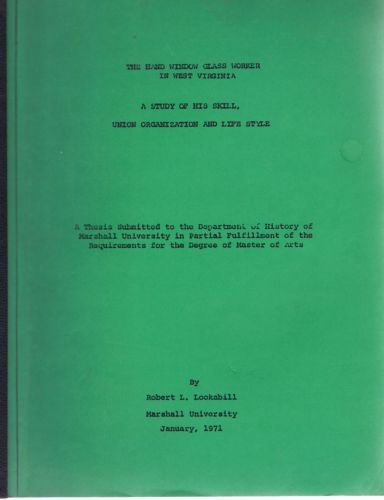 The Hand Window Glass Worker in West Virginia: a Study of His Skill, Union Organization and Life Style