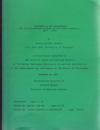 Machines in the Glasshouse: the Transformation of Work in the Glass Industry, 1820-1915