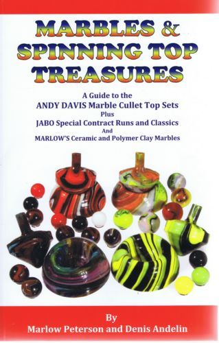 A new and beautiful Book documenting all the Top Sets made by Andy Davis. Also the JABO Special Contract and Classics Run Marbles made at the JABO marble plant in Reno, Ohio. In this Book you will find the total Quantity and name of each Top Set made, and the name and date of all the Special Contract Runs made at JABO. There are 40 pages of full color photos of all the Tops and Marbles, in this 90 pages book. You will also find information and photos of Marlow Peterson's Ceramic, Porcelain and Polymer Clay marbles. This is a must have book for marble collectors. Just out and now available is our new Price Guide for the JABO marbles and Andy Davis Top Sets titled "A PRICE GUIDE FOR JABO MARBLES AND MORE" This book is a sequel to "MARBLES AND SPINNING TOP TREASURES" They are a companion set, and you will definitely want both of them. We know you will love these books! It is available right now on this site.