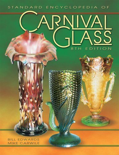 This 8th edition introduces almost 300 new patterns and over 500 all new photos, many never before printed, bringing this edition's total to over 1,850 color photos. This reference includes a brand new section on an emerging interest of collectors, hatpins. Grading information, Millersburg glass shards, and salesmen's samples are also added to this edition. All pieces and patterns are described in detail with important facts, colors, histories, and sizes. The bound-in price guide also includes virtually every piece of carnival glass ever made with prices given for each color in each pattern.432 pages. 2002 values. AUTHORBIO: Bill Edwards is a noted expert on pressed, carnival, and opalescent glass, and has been authoring books since 1975. He now co-authors books with expert Mike Carwile. His knowledge is unsurpassed in the glass world. He has written books on Carnival Glass, Northwood Carnival Glass, Millersburg Glass, Opalescent glass, Rarities of Carnival Glass, and Pressed Glass. AUTHORBIO: Mike Carwile is a noted expert on pressed, carnival, and opalescent glass, and has been authoring books with Bill Edwards since 1998. Together, their knowledge is unsurpassed in the glass world. He has co-authored books on Carnival Glass, Millersburg Glass, Opalescent glass, and Pressed Glass. REVIEW: When you have a question about Carnival Glass, this book is the first book to reach for. It remains a time-tested favorite. It's easy to use and immediately gives you what you're looking for, whether that's information about a pattern or the value of a piece. The price guide is in chart form, listing each pattern and the items made in those lines. Readers can easily see what pieces were made, as well as what colors they came in and the values forthose combinations. -Don Johnson