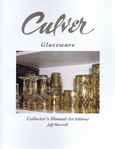 This is a manual for collectors, sellers and the curious with over 630 full-color photos of Culver glassware patterns, including those of 132 patterns identified by original pattern name – most with known years of production. The manual also includes common hardware sold with Culver glassware and barware sets, tips for the care and maintenance of Culver glassware, advice on shipping glass, unknown names and dates of verified Culver patterns featuring animals, glass jewel-studs, holiday themes, maritime themes, people & places, plants, fruits & vegetables and miscellaneous others. The manual also has information about Culver glassware shapes/pieces and types of Culver beverage glasses. Vintage Culver advertizing and sales-catalog print images are found throughout.