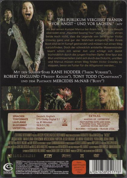 When a group of tourists on a New Orleans haunted swamp tour find themselves stranded in the wilderness, their evening of fun and spooks turns into a horrific nightmare.