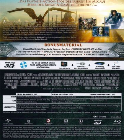 | Producer | Nicholas S. Carpenter, Edward Cheng, Stuart Fenegan, Alex Gartner, Jon Jashni, Peikang La, Chris Metzen, Michael Morhaime, Brent O'Connor, Rebecca Steel Roven Oakley, Rob Pardo, Shimu Qian, Charles Roven, Paul W. Sams, Rio Sato, Jillian Share, Thomas Tull, Zhonglei Wang | |