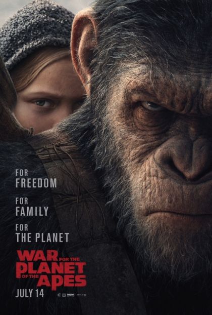 Caesar and his apes are forced into a deadly conflict with an army of humans led by a ruthless Colonel. After the apes suffer unimaginable losses, Caesar wrestles with his darker instincts and begins his own mythic quest to avenge his kind. As the journey finally brings them face to face, Caesar and the Colonel are pitted against each other in an epic battle that will determine the fate of both their species and the future of the planet.