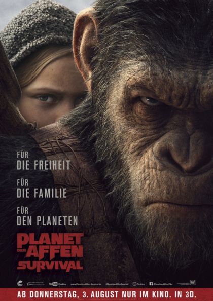Caesar and his apes are forced into a deadly conflict with an army of humans led by a ruthless Colonel. After the apes suffer unimaginable losses, Caesar wrestles with his darker instincts and begins his own mythic quest to avenge his kind. As the journey finally brings them face to face, Caesar and the Colonel are pitted against each other in an epic battle that will determine the fate of both their species and the future of the planet.