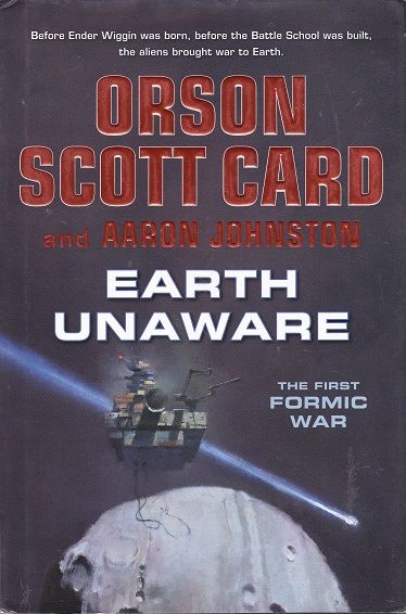 A hundred years before Ender's Game, humans thought they were alone in the galaxy. Humanity was slowly making their way out from Earth to the planets and asteroids of the Solar System, exploring and mining and founding colonies.The mining ship El Cavador is far out from Earth, in the deeps of the Kuiper Belt, beyond Pluto. Other mining ships, and the families that live on them, are few and far between this far out. So when El Cavador's telescopes pick up a fast-moving object coming in-system, it's hard to know what to make of it. It's massive and moving at a significant fraction of the speed of light.But the ship has other problems. Their systems are old and failing. The family is getting too big. There are claim-jumping corporates bringing Asteroid Belt tactics to the Kuiper Belt. Worrying about a distant object that might or might not be an alien ship seems...not important.They're wrong. It's the most important thing that has happened to the human race in a million years. This is humanity's first contact with an alien race. The First Formic War is about to begin. Earth Unaware is the first novel in The First Formic War series by Orson Scott Card and Aaron Johnston.THE ENDER UNIVERSE Ender series Ender’s Game / Speaker for the Dead / Xenocide / Children of the Mind / Ender in Exile / Children of the Fleet Ender’s Shadow series Ender’s Shadow / Shadow of the Hegemon / Shadow Puppets / Shadow of the Giant / Shadows in Flight The First Formic War (with Aaron Johnston) Earth Unaware / Earth Afire / Earth Awakens The Second Formic War (with Aaron Johnston) The Swarm / The Hive Ender novellas A War of Gifts / First Meetings