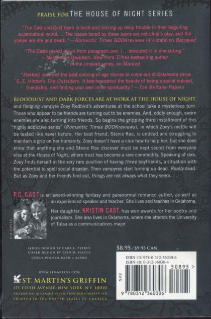 Dark forces are at work at the House of Night and fledgling vampyre Zoey Redbird's adventures at the school take a mysterious turn. Those who appear to be friends are turning out to be enemies. And oddly enough, sworn enemies are also turning into friends. So begins the gripping third installment of this "highly addictive series" (Romantic Times), in which Zoey's mettle will be tested like never before. Her best friend, Stevie Rae, is undead and struggling to maintain a grip on her humanity. Zoey doesn't have a clue how to help her, but she does know that anything she and Stevie Rae discover must be kept secret from everyone else at the House of Night, where trust has become a rare commodity. Speaking of rare: Zoey finds herself in the very unexpected and rare position of having three boyfriends. Mix a little bloodlust into the equation and the situation has the potential to spell social disaster. Just when it seems things couldn't get any tougher, vampyres start turning up dead. Really dead. It looks like the People of Faith, and Zoey's horrid step-father in particular, are tired of living side-by-side with vampyres. But, as Zoey and her friends so often find out, how things appear rarely reflects the truth…Chosen is the third in the House of Night series by P. C. Cast and Kristin Cast.