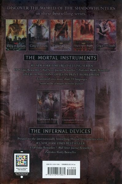 Magic is dangerous—but love is more dangerous still. Discover the “compulsively readable” (Booklist) first book in the #1 New York Times bestselling Infernal Devices trilogy, prequel to the internationally bestselling Mortal Instruments series! Clockwork Angel is a Shadowhunters novel.When Tessa Gray crosses the ocean to find her brother, her destination is England, the time is the reign of Queen Victoria, and something terrifying is waiting for her in London's Downworld, where vampires, warlocks, and other supernatural folk stalk the gaslit streets. Only the Shadowhunters, warriors dedicated to ridding the world of demons, keep order amidst the chaos.Kidnapped by a secret organization called The Pandemonium Club, Tessa learns that she herself is a Downworlder with a rare ability: the power to transform into another person. What’s more, the Magister, the shadowy figure who runs the Club, will stop at nothing to claim Tessa's power for his own.Friendless and hunted, Tessa takes refuge with the Shadowhunters of the London Institute, who swear to find her brother if she will use her power to help them. She soon finds herself fascinated by—and torn between—two best friends: James, whose fragile beauty hides a deadly secret, and Will, whose caustic wit and volatile moods keep everyone in his life at arm’s length…everyone, that is, but Tessa. As their search draws them deep into the heart of an arcane plot that threatens to destroy the Shadowhunters, Tessa realizes that she may need to choose between saving her brother and helping her new friends save the world…and that love may be the most dangerous magic of all.