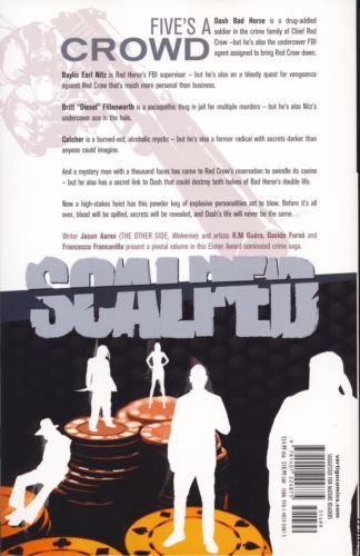 Written by Jason Aaron Art by R.M. Guera, Davide Furno and Francesco Francavilla Cover by Jock In this latest SCALPED volume, collecting issues #25-29 of the acclaimed series, we see the landscape of the Prairie Rose reservation and casino through the eyes of a newcomer - a card shark and con man - whose presence could spell doom for one of our main characters. Advance-solicited; on sale October 21 ? 128 pg, FC, $14.99 US ? MATURE READERS