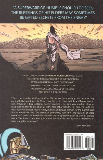 From legendary creator Grant Morrison (All-Star Superman, Batman & Robin, The Invisibles), comes the second issue of his newest creation! 18 Days is the story of three generations of super-warriors, meeting for the final battle of their age; a climactic war that concludes the age of the gods and begins the age of man. Yudish, leader of the Pandava brothers confronts his cousin the enemy King, one last time. 'The essential ambiguity, humanity and realism of these characters, set in this incredible world of the imagination, gives 18 Days its unique flavor. The tone is modern, gritty and emotionally real against a backdrop of techno-mythic super-war.' - Grant Morrison