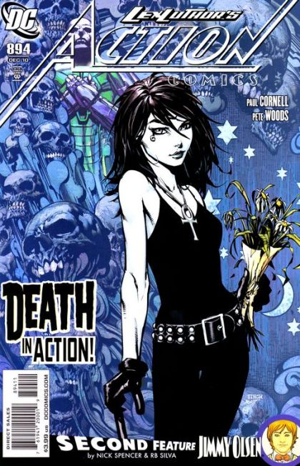Written by PAUL CORNELL Co-feature written by NICK SPENCER Art by PETE WOODS Co-feature art by RB SILVA & DENIS FRIETAS Cover by DAVID FINCH & BATT Guest-starring Death from SANDMAN! Yes, you read that right! Death! From SANDMAN! In ACTION COMICS! Lex Luthor finds himself literally at Death's door, which leads to a fascinating look not only into the mind of one of the all-time greatest villains, but also at what Death means in the DC Universe? And in the JIMMY OLSEN co-feature, an alien race has chosen Metropolis to be the host of their millennial celebration! And who better to show them around town than James Bartholomew Olsen? But when the alien princess gets wasted and her brother starts picking bar fights, it's up to Jimmy to get things under control before all of Metropolis is destroyed! On sale OCTOBER 27 ? 40 pg, FC $3.99 US