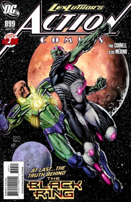 Written by PAUL CORNELL Art by PETE WOODS Cover by DAVID FINCH & BATT Lex Luthor has left no stone unturned in his quest for the Black Lantern energy, but he's not the only one searching for it - Brainiac wants the energy and the knowledge it offers all to himself. Trust us, this is gonna be the most vicious Luthor/Brainiac team-up ever. It all sets the stage for both a conclusion and a beginning in next month's historic ACTION COMICS #900, featuring the return of you-know-who? On sale MARCH 30 ? 32 pg, FC