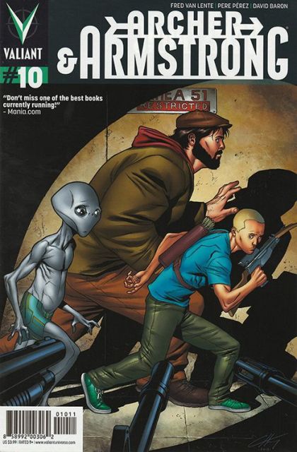 ALL-NEW ARC! Archer and Armstrong and Aliens. Oh my! Mary-Maria, Archer's arch-nemesis/love interest/adopted sister is back, ready to take over The Sect - by any means necessary. And what better way to seize control of the secret society of secret societies than by unlocking their most secretive of secrets on the secretest place on Earth? And who but the Valiant Universe's premiere team of conspiracy-busters can possibly stop her? Just when you thought this book couldn't get any weirder, Archer & Armstrong storm Area 51and things get weirder still!