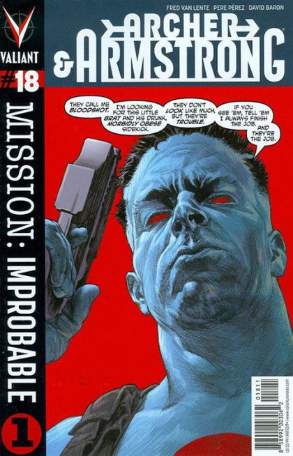 MISSION: IMPROBABLE - PART ONE! Archer & Armstrong at war with Bloodshot and H.A.R.D Corps! (GULP.) That's right, Valiant's swashbuckling adventure duo have been targeted for elimination by Project Rising Spirit's most elite kill crew. Their mission? Elimainte Obadiah Archer - or die trying. Hot off the secret revelations of Archer #0, the fight of the year begins right here in the landmark first issue of this special four-part crossover event!