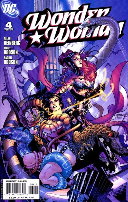 In the headquarters of the Department of Metahuman Affairs, Sarge Steel explains to Diana Prince and Nemesis that Circe has liberated over two thousand women throughout the world from slave labor and prostitution in her first twelve hours as Wonder Woman, and has murdered any man who tried to stop her. Diana visits the Justice Society of America, where Doctor Mid-Nite confirms that Circe has taken her powers. In New York, the JSA offers to confront Circe, but Diana declines their help, explaining that Circe will be ready for them. Diana leaves and meets with Hercules, who is also without powers. The two of them board an "invisible" jet (a new stealth fighter Batman gave to Diana) and head to Aeaea, home to Circe. Their plan is to take Circe's spell book and trade it for the return of their powers. Circe shows up and attacks Hercules, but Diana (equipped as Diana Prince) uses a jetpack and flies away with her. Circe lets Diana take the Lasso of Truth and throws her to the ground, but Diana catches one of Circe's bestiamorphs, a dragon, and uses the lasso to expose his true nature - that of a man who wants to help reverse the spell that turned him into a beast. Diana flies the dragon to Circe's temple, where Circe captures her in Cassie's lasso, though Hercules immediately shows up and stops Circe. Hercules, impressed by Diana's resourcefulness even without her powers, hits Diana and explains his plan: when Athena withdrew Olympus from Earth, he and Circe stayed behind, planning to rule the planet as gods. But when Circe betrayed him (last issue), he decided he wanted all the power to himself, and now he plans to force Circe to award it to him. A fight ensues, and Diana retrieves her tiara and the Lasso of Lightning, and using the latter, snares Hercules and tells him to release Circe. Hercules threatens to kill Circe unless she speaks the spell that will deliver the powers to him. Diana encourages her, because to do that, Circe must first reverse the original spell, which she does, and Diana once more becomes Wonder Woman. But just as she does so, a staggering band of villains (including Giganta, Doctor Psycho, Cheetah, and others) appears!