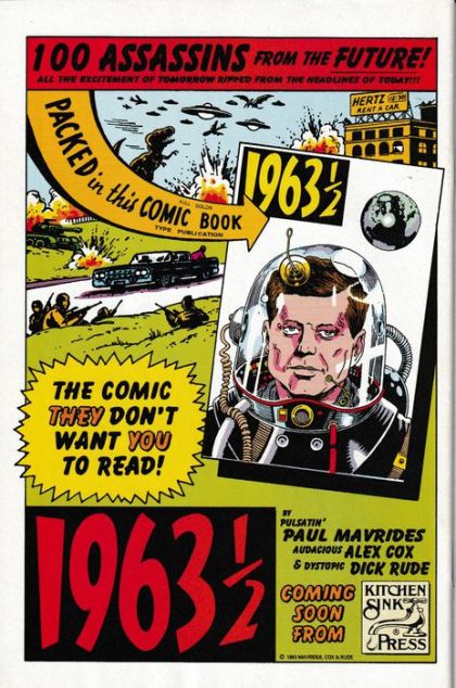 Cover by Rick Veitch. From Here to Alternity!, script by Alan Moore, art by Rick Veitch, Don Simpson, and Dave Gibbons; The Tomorrow Syndicate, a team similar to The Avengers, undertake a mission to locate Mystery, Incorporated, who have gone missing; in a dimensional opening, they discover alternate realities; the identity of the mysterious backwards time traveler from issue one is revealed. 36 pgs., full color. $1.95. Cover price $1.95.