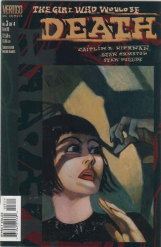 When The Sandman's Eblis O'Shaughnessy, envoy of the Endless, finally confronts Plath, he must also confront his own limitations. But the opposition to Plath's plan to capture Death also comes from within as Plath struggles with supernatural forces, as well as for the loyalty of her lover Evangeline. Note: Death does not appear in this miniseries. Written by Caitlin R. Kiernan. Art by Sean Phillips and Dean Ormston. Painted cover by Dean Ormston. Mature Readers. FC, 32 pg. Cover price $2.50.