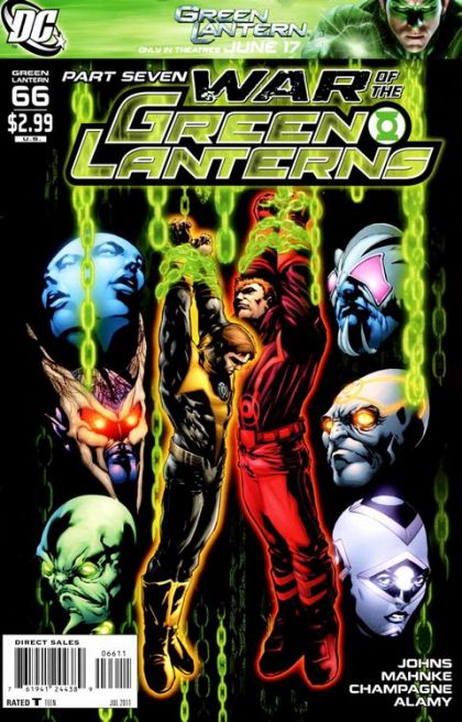Written by GEOFF JOHNS Art by DOUG MAHNKE and CHRISTIAN ALAMY Cover by DOUG MAHNKE 1:10 Variant cover by CLAYTON CRAIN The blockbuster 'War of the Green Lanterns' takes it toll! Hal Jordan, Guy Gardner, John Stewart and Kyle Rayner fight on against their fellow Lanterns - and the carnage escalates to savage heights. And how will the other New Guardians capitalize on it? Retailers please note: This issue will ship with two covers. Please see the Previews Order Form for more information. On sale MAY 11 ? 32 pg, FC, $2.99 US ? RATED T