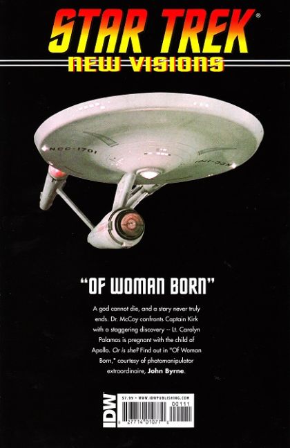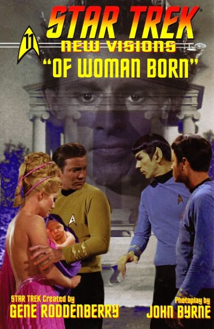 A god cannot die, and a story never truly ends. Dr. McCoy confronts Captain Kirk with a staggering discovery -- Lt. Carolyn Palamas is pregnant with the child of Apollo. Or is she? Find out in 'Of Woman Born,' courtesy of photomanipulator extraordinaire, John Byrne.