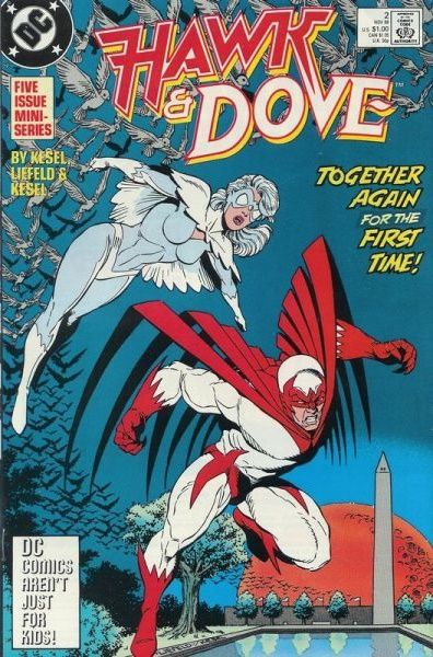 "Together Again for the First Time!" Kestrel's got Hawk right where he wants him, thanks in no small part to Hawk's difficulty in handling the return of Dove. Co-written by Barbara Kesel and Karl Kesel, with art by Rob Liefeld and Karl Kesel. Cover by Liefeld and Karl Kesel. Cover price $1.00.