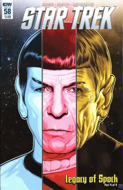The stunning conclusion of 'Legacy of Spock'! The fate of the Vulcan people hangs in the balance as Spock tries to prevent all-out war with the Romulan Empire! Will the Vulcans find a new homeworld on which to rebuild their civilization... or does this spell the end of their species? Don't miss the final chapter of this mini-series event celebrating the 50th anniversary of STAR TREK!
