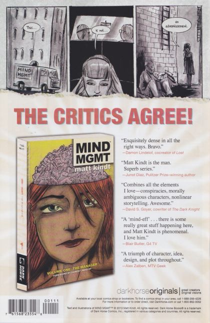 Just in time for the first collection, the sold-out MIND MGMT #1 is back in print-for $1! Now's your chance to catch up with Matt Kindt's brilliant tale of lost memories, the Mind Management psychic spy agency, its most infamous defector, and the journalist who uncovers their incredible secrets!