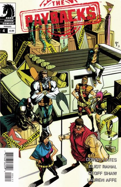 Donny Cates (W), Eliot Rahal (W), Geoff Shaw (A/Cover), and Lauren Affe (C) Everyone's favorite superhero repo squad finally confront the shadowy organization that's been offing bankrupt heroes, and they work out their differences with poise and civility. No, actually, they fight. But one of the Paybacks is fed up with the life of indentured servitude and decides it's time to default . . . no matter the cost!