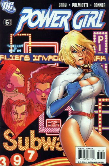 Written by Jimmy Palmiotti & Justin Gray Art and cover by Amanda Conner Variant cover by Guillem March 'Space Girls Gone Wild!' part 3 of 3! The trio of sexy alien marauders continues their rampage across Earth, and Power Girl makes her last stand against these seemingly unstoppable foes. But even Power Girl has her limits? Retailers please note: This issue will ship with two covers. For every 10 copies of the Standard Edition (with a cover by Amanda Conner), retailers may order one copy of the Variant Edition (with a cover by Guillem March). Please see the Previews Order Form for more information. On sale October 21 o 32 pg, FC, $2.99 US