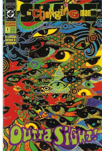 Cover by Brendan McCarthy. Love And Haight, script by Peter Milligan, art by Chris Bachalo and Mark Pennington; If you're going to San Francisco, be sure to wear a Madness Vest, as Shade flashes back to the Aquarian Age of the love children! 36 pgs., full color. $1.50. Cover price $1.50.