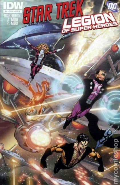 Chris Roberson (w) o Jeffrey Moy & Philip Moy (a) o Phil Jimenez, Chris Sprouse (c) Working together to find a way back to their respective timelines, the Starfleet officers and Legionnaires have split into two teams, with members of both groups on each team. One group travels back in time to the moment when their own histories were truncated and this new blended timeline came into being, while the other team travels to the heart of the Imperial Planets of Earth. So as one team finds themselves witnessing what happened in the deep past to change history, the other team discovers the far reaching effects of the aftermath in the present.