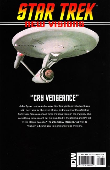 John Byrne continues his new Star Trek photonovel adventures with two tales for the price of one, as the crew of the Starship: Enterprise faces a menace three millions years in the making, plus something more recent but no less deadly. Presenting a follow-up to the classic episode 'The Doomsday Machine,' as well as 'Robot,' a brand-new tale of murder and mystery.