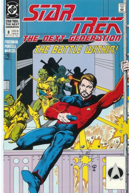 In "The Battle Within," Data must make a choice between the crew of the USS Enterprise...and a new life as a space-faring pirate. Part 2 of 2, continued from the previous issue. Written by Michael Jan Friedman, with art by Gordon Purcell and Pablo Marcos. New Format. Cover price $1.50.