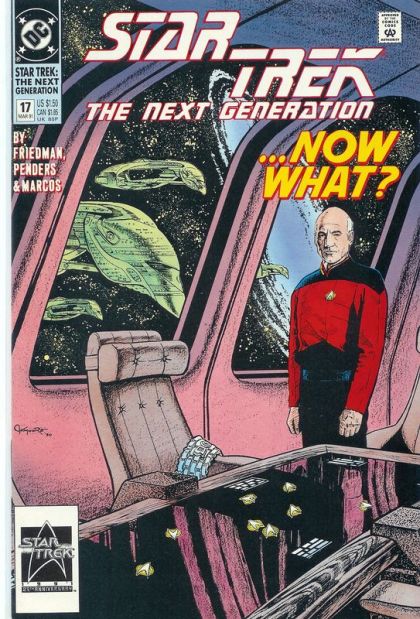 Trapped in Romulan space, his crew seemingly insane, Captain Picard must use every resource at his command to save the Enterprise. Part 2 of 2, continued from the previous issue. Written by Michael Jan Friedman, with art by Penders and Pablo Marcos. Cover by Jerome Moore. New Format. Cover price $1.50.