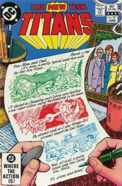 Kid Flash writes a letter to his parents, apprising them of recent events involving himself and the other Teen Titans: a new super-villain calling himself the Disruptor attacks Cyborg and Changeling in the New York sewers; the Titans throw a surprise birthday party for Cyborg; and Kid Flash himself is captured by the Disruptor and his father, an old foe of Batman’s known as “Brains” Beldon. The Titans counterattack, only, to have the Disruptor turn their own powers against them, until he is defeated by Raven’s soul-self.