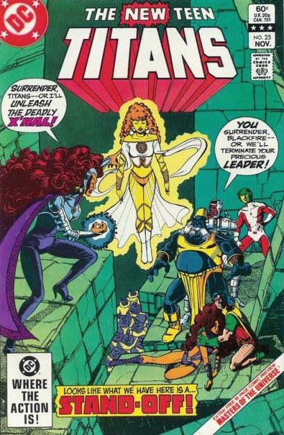 While the other Titans’ attempts to infiltrate the Gordanian ranks go awry, Raven is almost overcome by the evil Trigon side of her personality as she struggles to heal those wounded in the ongoing battle, and Demonia of the Omega Men attempts unsuccessfully to betray her comrades to Lord Damyn. Blackfire presents the Citadel leaders with the captive X’Hal, just as the Titans attack to rescue Starfire. A standoff results when Cyborg threatens to kill Lord Damyn unless Komand’r surrenders. Blackfire resolves the situation by ruthlessly destroying Damyn herself and claiming the throne of the Citadel homeworld.