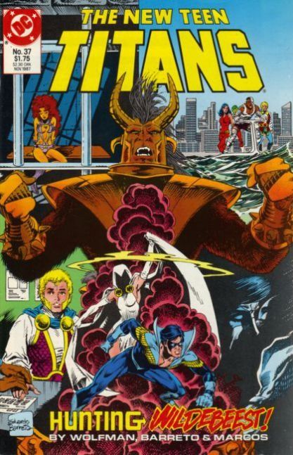 The Titans are released on bail except for Starfire, who is being held for the murder of the man in the Wildebeest suit. Nightwing and Raven investigate and discover the man in the Wildebeest suit was a scientist named Jonathan Surrey, who developed remote-control exo-suits. Further investigation proved the radiation that killed Surrey was much higher than anything generated by Starfire’s starbolts. As Nightwing and Raven investigate, Raven unwittingly uses her emotion powers and shares a kiss with Nightwing, who she believes loves her. Nightwing then tangles with the Wildebeest, who later escapes. There is enough evidence to clear Starfire, but all leads to the identity of the Wildebeest prove to be dead ends. The Wildebeest vows to exact revenge on the Titans.