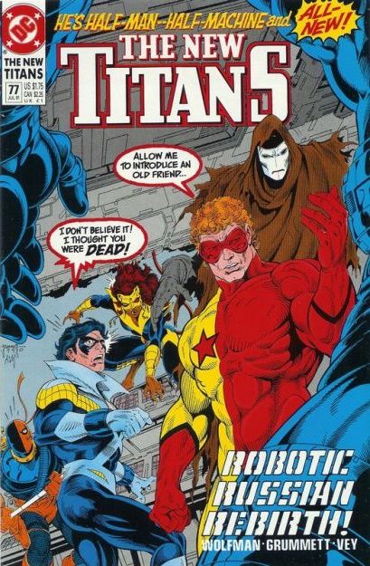 In Russia, Red Star salvages the crashed rocket ship and recognizes its contents. In New York, Nightwing and company use the T-Jet to head towards Russia to retrieve their missing-in-action teammate. Red Star’s surrogate father, Dr. Pytor Raskov, works to save the life of the person within the rocket ship. Nightwing, Deathstroke, Dayton, Pantha, Phantasm and Arella arrive at the Science City Complex, where they meet with Raskov and Red Star. The group is horrified to discover Vic Stone has been rebuilt by Russian scientists as a brain-dead robotic stormtrooper. Claiming Cyborg in the name of Russia, Raskov orders Vic to attack the Titans.
