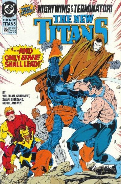 Lord Chaos assumes control of a large conglomerate as he attempts to locate Donna Troy and the Team Titans to insure his own birth in the future. Steve Dayton offers his Estate as a place for the Titans to stay after the destruction of Titans Tower. The Titans deal with Baby Wildebeest, who is a pint-sized terror of a toddler. Red Star, Troia, and Terry Long later visit a brain-dead Cyborg at S.T.A.R. Labs, where Donna collapses from an unknown malady. Elsewhere, The Team Titans continue to hunt Donna Troy. Terra II makes herself known to an awestruck Changeling. Mirage spies on Nightwing and Starfire. Later, Starfire and Dick Grayson have an argument and Dick leaves, only to return mere moments later. But is it really Dick… Or possibly Mirage in disguise? Later, a distraught Nightwing confronts Deathstroke at the ruins of Titans Tower, leading to a violent confrontation between the two men. Realizing they are both dealing with loss on their own terms, they part ways.