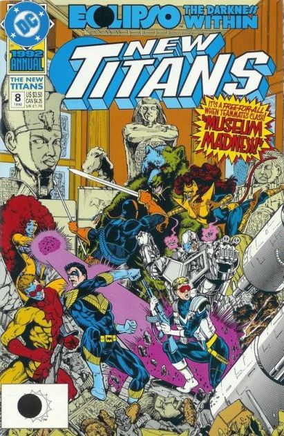 The Titans continue to try to repair Vic Stone’s damaged mind at S.T.A.R. Labs, with futile results. Meanwhile, Eclipso spreads his evil and possesses Red Star, who uses Cyborg’s brain-dead body as his personal soldier. Red Star and Cyborg encounter the Titans, which leads to the possession of several other Titans, including Changeling, Starfire, Pantha and even Deatshtroke. Nightwing and Vigilante Pat Trayce remain unaffected, and seek to rally the remaining heroes to battle their infected allies.