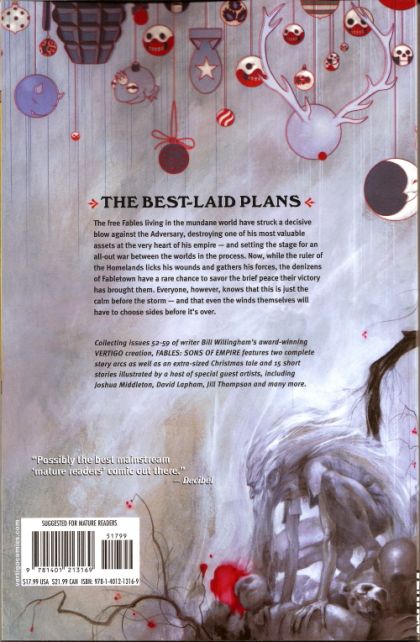 Collecting FABLES #52-59! Pinocchio suffers seriously divided loyalties between his father, the evil Adversary, and his fellow Fable refugees in New York. Plus, Bigby Wolf reluctantly decides it's finally time to square accounts with his long-estranged father, the North Wind, and makes a journey with Snow White and their kids to find him. Advance-solicited; on sale June 13 ? 192 pg, FC, $17.99 US ? MATURE READERS