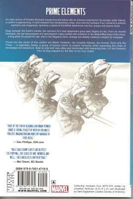 Written by JONATHAN HICKMAN Penciled by DALE EAGLESHAM Cover by ALAN DAVIS Jonathan Hickman and Dale Eaglesham's critically acclaimed run continues in the Prime Elements, a story that kicks off the new world-spanning adventures of the Fantastic Four. Featuring the return of the Mole Man, the architecture of the underworld, and the smartest Moloid you'll ever meet. Watch as the First Family journeys to the moon where they learn that the history of the Inhumans runs much deeper, and richer, than previously believed. Collecting FANTASTIC FOUR #575-578. 112 PGS./Rated A ?$19.99