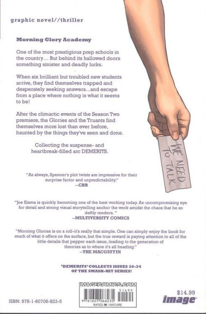The Glories are scattered, the Faculty is broken, and the Truants are on the attack! Collecting the explosive, mind-bending Season 2 premiere event 'Tests.' Collects MORNING GLORIES #30-34