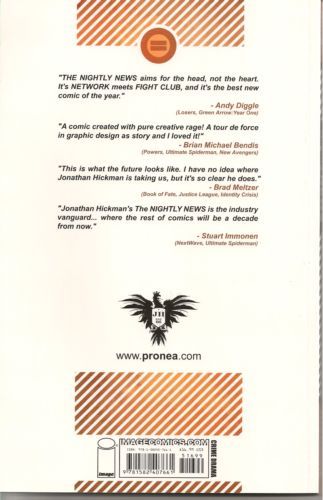 story JONATHAN HICKMAN cover & art JONATHAN HICKMAN 184 PAGES FC SEPTEMBER 19 $16.99 Collecting the critically-acclaimed miniseries from Image Comics. As an act of violence spirals out of control to encompass the entirety of the news media, a cult has emerged from the errors and retractions that have ruined careers, marriages and even lives. Under direction from his cult master, The Hand leads an army of followers committed to revolution, willing to die for their cause.