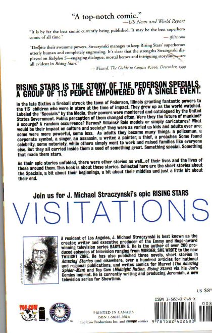 (W) J. Michael Straczynski (P) Frank/Zanier/Cha (I) Gorder & Livesay (C) Liquid!/Nelson/Starr/Evans Collected together for the first time, you can now get your hands on some of J. Michael Straczynski's most sought after Rising Stars stories. Including the rare zero issue with an additional 6 page story illustrated by Gary Frank, the limited 1/2 issue, and the very FIRST Rising Stars Preview issue, this incredible collection showcasing several unique tales of the Specials is not to be missed! Plus, with added sketches and an all new cover by Brent Anderson, this great collection is sure to find a home with you! Prestige Format In stores the week of August 14th. SC, 7x10, 64pg, FC