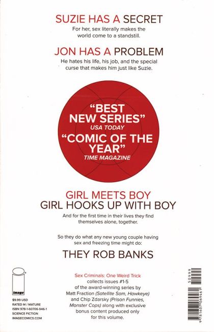 Suzie's just a regular gal with an irregular gift: when she has sex, she stops time. One day she meets Jon and it turns out he has the same ability. And sooner or later they get around to using their gifts to do what we'd ALL do: rob a couple banks. A bawdy and brazen sex comedy for comics begins here, by MATT FRACTION (SATELLITE SAM, Hawkeye) and CHIP ZDARSKY (Prison Funnies, Monster Cops). Collects SEX CRIMINALS #1-5