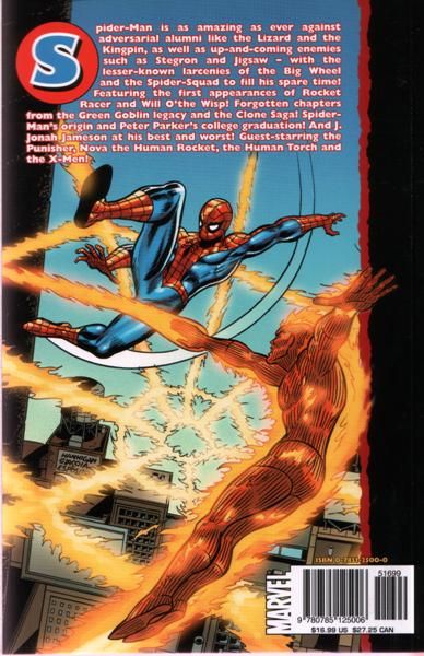 Written by VARIOUS Penciled by VARIOUS Cover by ROSS ANDRU Spider-Man is as amazing as ever against adversarial alumni like the Lizard and the Kingpin, as well as up-and-coming enemies such as Stegron and Jigsaw - with the lesser-known larcenies of the Big Wheel and the Spider-Squad to fill his spare time! Featuring the first appearances of Rocket Racer and Will O' the Wisp! Forgotten chapters from the Green Goblin legacy and the Clone Saga! Spider-Man's origin and Peter Parker's college graduation! And J. Jonah Jameson at his best and worst! Guest-starring the Punisher, Nova the Human Rocket, the Human Torch and the X-Men! Collecting AMAZING SPIDER-MAN (1963) #161-185 and ANNUAL #11, GIANT-SIZE SPIDER-MAN #6, and NOVA (1976) #12. 512 PGS./All Ages