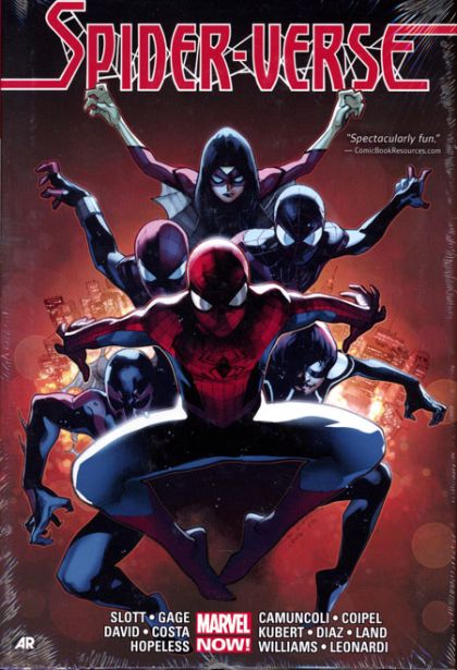 When the evil Inheritors begin exterminating Spider-characters throughout the multiverse, every single Spider-Man ever is needed to save the day! An interdimensional Spider-army gathers to fight Morlun and his deadly family, but as the Prophecy comes to fruition, none of them are safe! What will this brutal war for survival mean for Peter Parkerand the rest of the Spiders? Starring the Superior Spider-Man, the Ultimate Universe's Miles Morales and Jessica Drew, Spider-Man 2099, Spider-Woman, Silk, Kaine, Scarlet Spider, MC2's Spider-Girl, Spider-Man Noir, Spider-Man 1602, Spider-Ham, Spider-Monkey, Lady Spider, Spider-Punk, Spider-UK, the rocktacular Spider-Gwenand hundreds more, from the beloved to the obscure! Collecting AMAZING SPIDER-MAN (2014) #7-15, SUPERIOR SPIDER-MAN #32-33, SPIDER-VERSE (2015) #1-2, SPIDER-VERSE TEAM-UP #1-3, SCARLET SPIDERS #1-3, SPIDER-WOMAN (2014) #1-4, SPIDER-MAN 2099 (2014) #5-8 and material from FREE COMIC BOOK DAY 2014 (GUARDIANS OF THE GALAXY) #1. Rated T