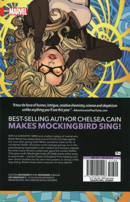 S.H.I.E.L.D. Agent Bobbi Morse, the former Avenger known as Mockingbird, goes solo! With a scientific mind and a lethal mastery of martial arts, she's always been one of S.H.I.E.L.D.'s best agents, but what happens when someone close to her is murdered? There are strange goings-on to investigate in the peacekeeping organization's own medical-and-recovery network. But when Lance Hunter's undercover gig at the London Hellfire Club goes south, Mockingbird sets off, battle staves at the ready, to save Hunter - and the Queen of England! From helping out a teen driven bonkers by her own new powers, to doing a little dog-sitting, Bobbi shows she's a woman of many talents as best-selling author Chelsea Cain makes Mockingbird sing! Collecting MOCKINGBIRD #1-5 & MOCKINGBIRD: S.H.I.E.L.D. 50TH ANNIVERSARY #1. Rated T+
